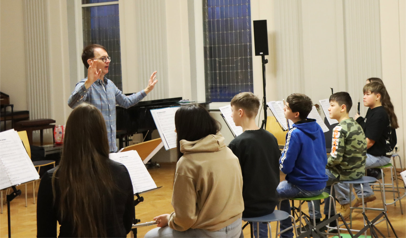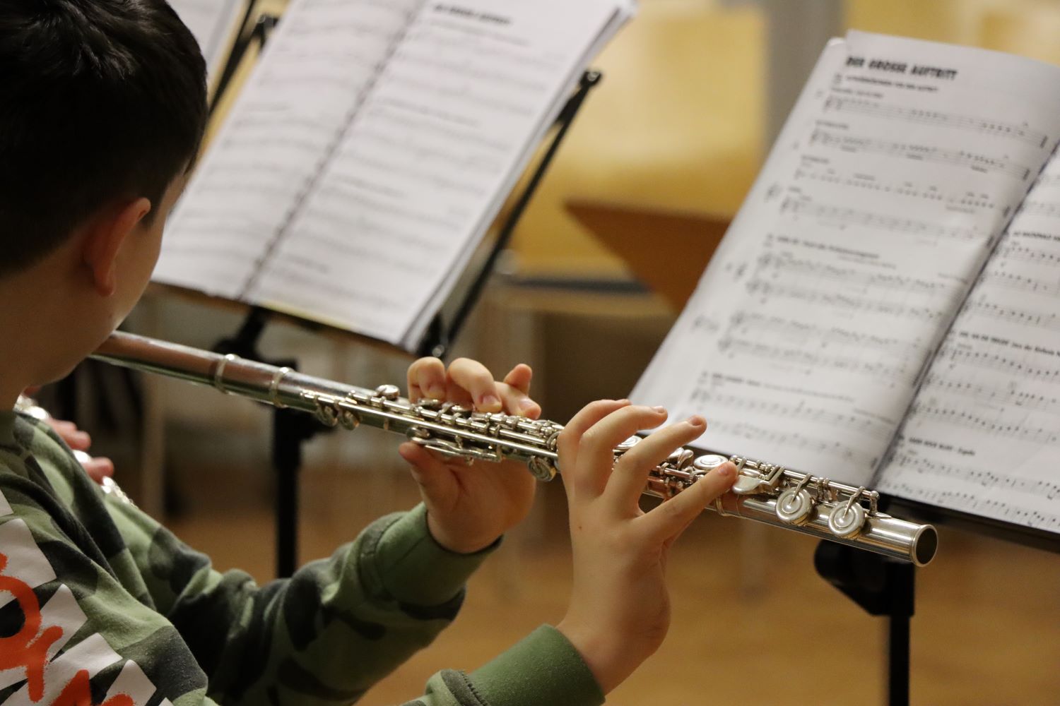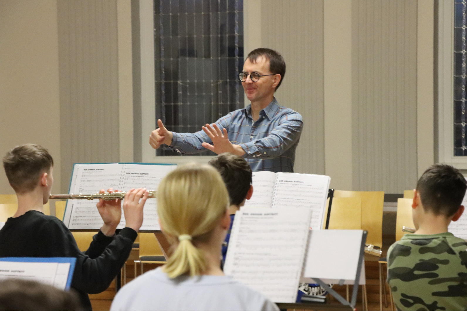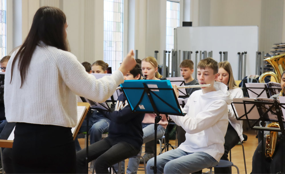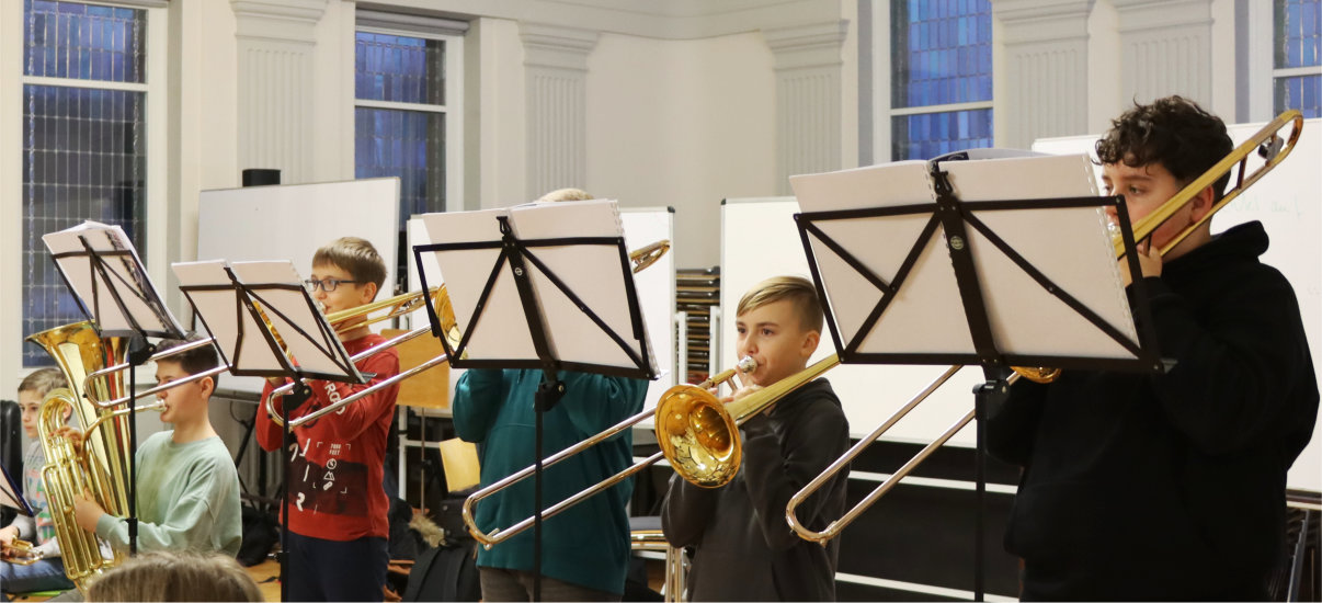 Im kostenlosen Musikunterricht lernt jede Instrumentengruppe dann die ersten Töne zu spielen und schon bald stehen zusätzlich die ersten Orchesterproben an.