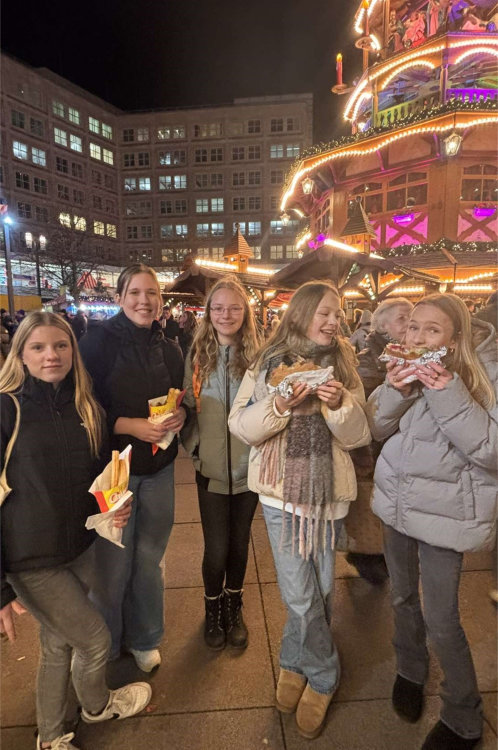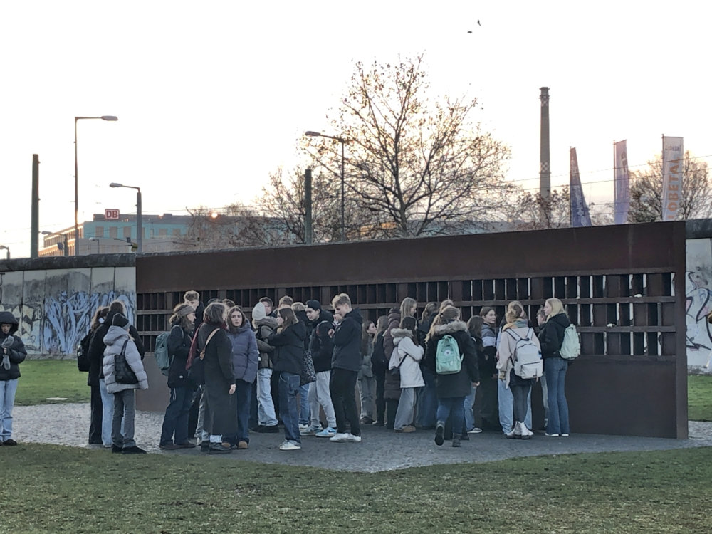 | Donnerstag | Ausflug nach Berlin (Sightseeing vom Alexanderplatz zum Brandenburger Tor, geplanter Besuch der Reichstagskuppel, die jedoch leider ganz kurzfristig wegen einer spontanen Fraktionssitzung geschlossen wurde, Sinti & Roma- sowie Holocaust-Mahnmal, Potsdamer Platz, Mittagessen im Abgeordnetenhaus von Berlin, Besuch der Gedenkstätte Bernauer Straße (Berliner Mauer mit Todessteifen), Alexa-Shopping-Center und Weihnachtsmarkt |