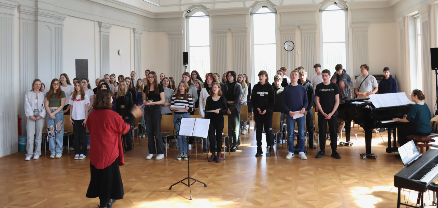 Vielfalt wird in unseren Chorklassen des 7. und 8. Jahrgangs großgeschrieben. Wöchentlich 90 Minuten proben wir zusätzlich zum Musikunterricht moderne, traditionelle und von den Schülerinnen und Schülern gewünschte Lieder.