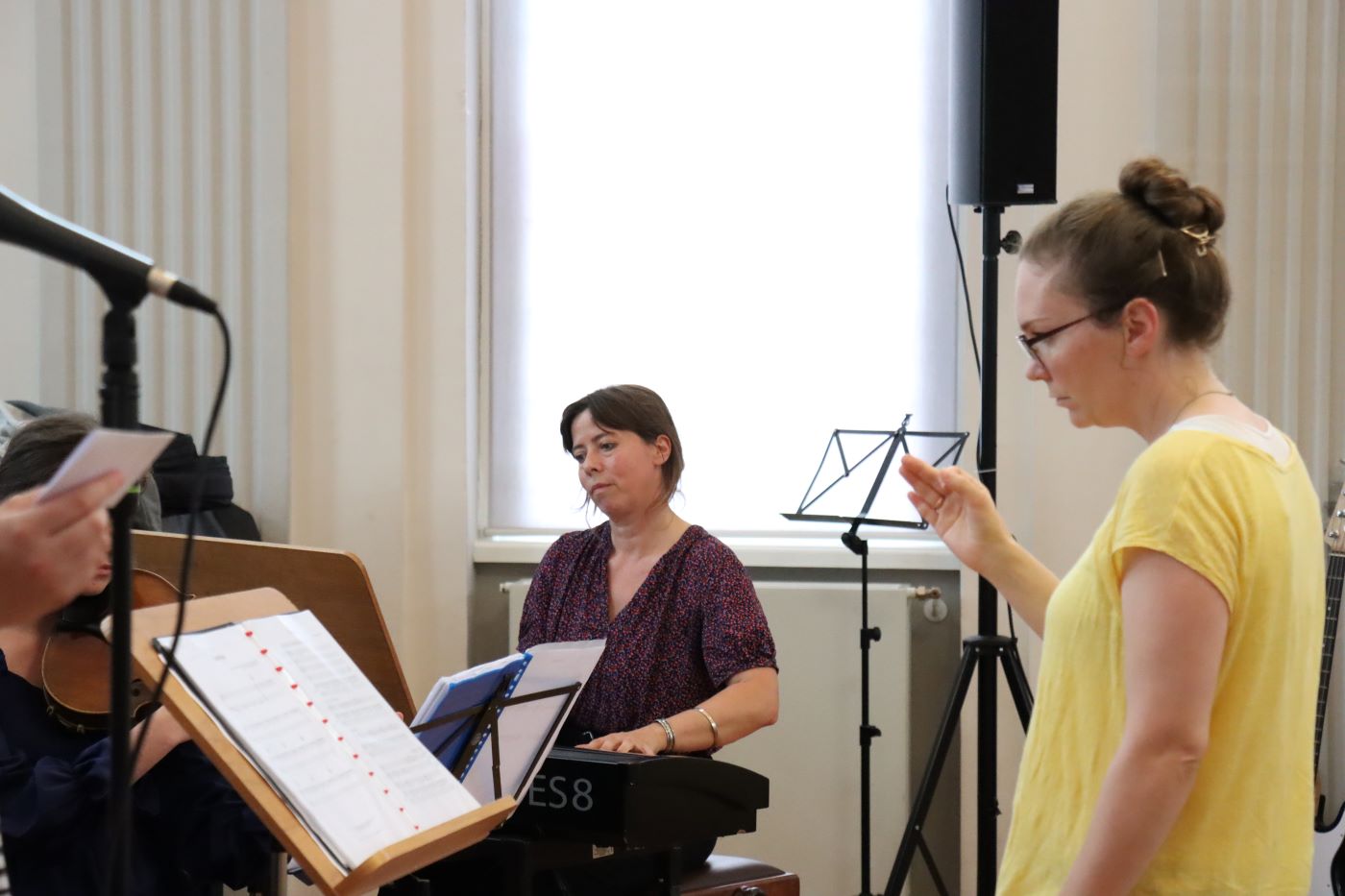 Wir begleiten uns mit Instrumenten und holen gute Solosängerinnen und -sänger ans Mikrophon.