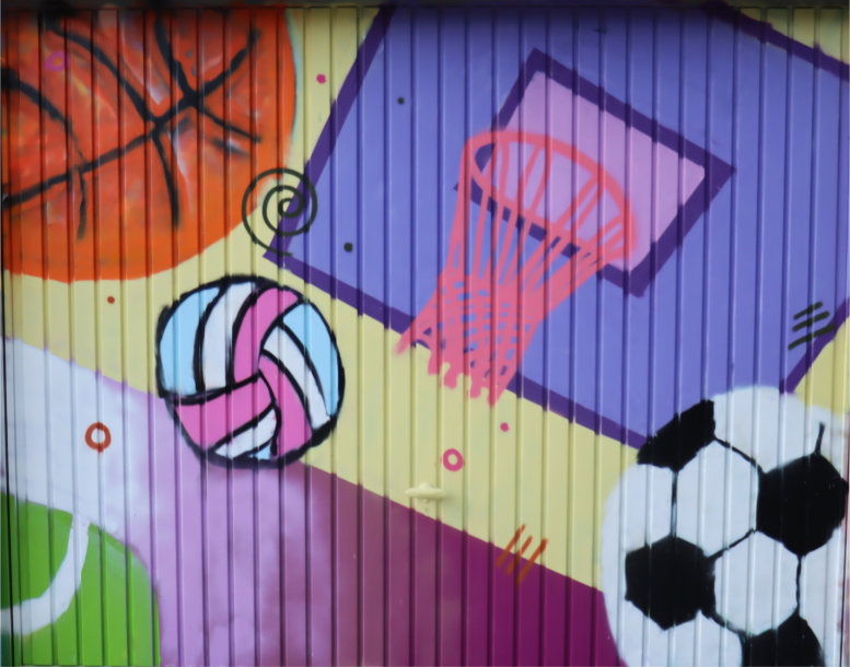 Die Kunstklasse 7c des Jahrgangs 2023/2024 gestaltete am 8.7. und 9.7. mit Graffiti-Kunst einige Passagen des Schulhofs und den Schuppen auf dem Gelände unserer Schule um.