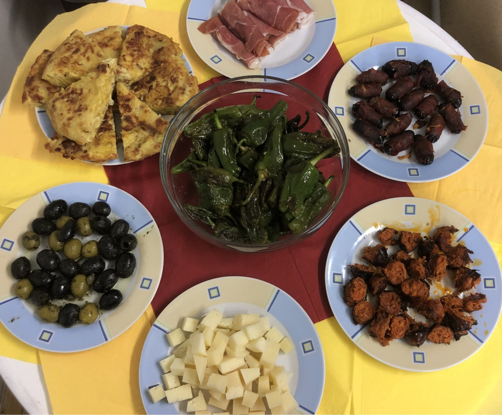 Auf dem Speiseplan standen Tortilla de patatas (spanisches Kartoffel-Omelett) und Pimientos de Padrón (gebratene Paprikaschoten).